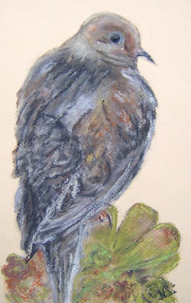 Soft pastel on buff-toned Canson Mi-Teintes paper A watchful dove resting (but not quite relaxing) in the plants Price includes free USPS First Class shipping. Piece comes carefully packaged with Glassine paper cover to protect artwork until you are ready to frame it under glass. Soft pastel on buff-toned Canson Mi-Teintes paper A watchful dove resting (but not quite relaxing) in the plants Price includes free USPS First Class shipping. Piece comes carefully packaged with Glassine paper cover to protect artwork until you are ready to frame it under glass. |