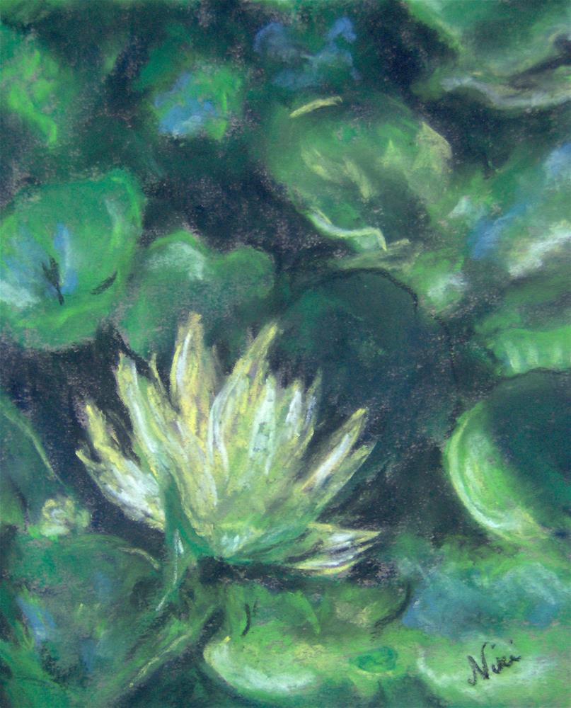 Soft pastel on Canson Mi-Teintes paper-- I was inspired by the way the light hit this particular flower among the jumbled lily pads in the pond Soft pastel on Canson Mi-Teintes paper-- I was inspired by the way the light hit this particular flower among the jumbled lily pads in the pond |