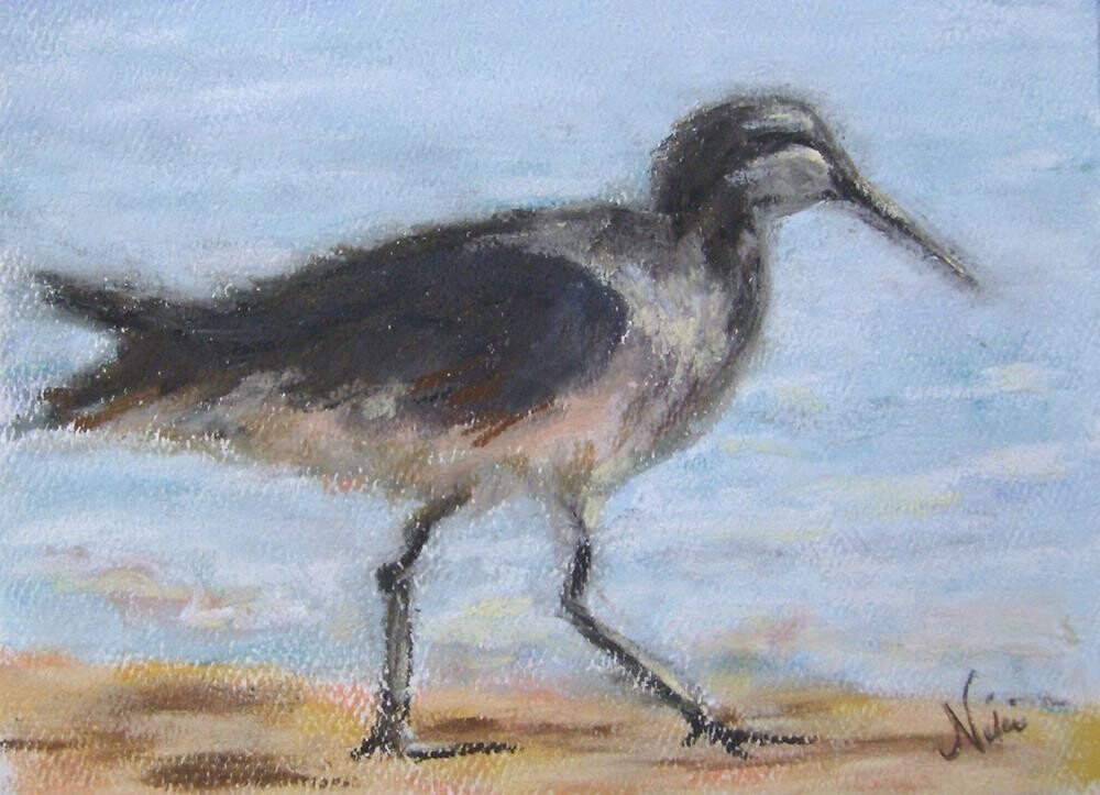 Soft pastel on Strathmore paper A sandpiper running along the waves at Newport Beach in California Shipping and price as detailed on Ebay, piece comes carefully packaged to protect artwork until you are ready to frame it under glass. Soft pastel on Strathmore paper A sandpiper running along the waves at Newport Beach in California Shipping and price as detailed on Ebay, piece comes carefully packaged to protect artwork until you are ready to frame it under glass. |