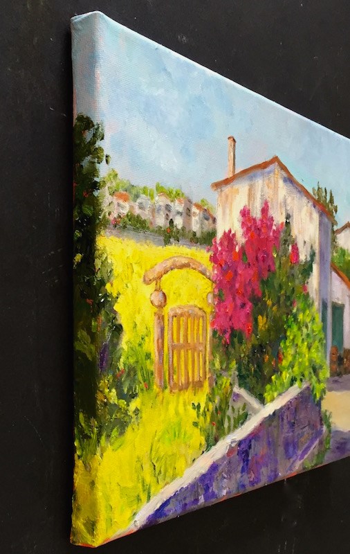 This old gate is the star of this painting. From the countryside in Majorca, it is a bit of the past, along with the old buildings, and a reminder of places still to be explored.