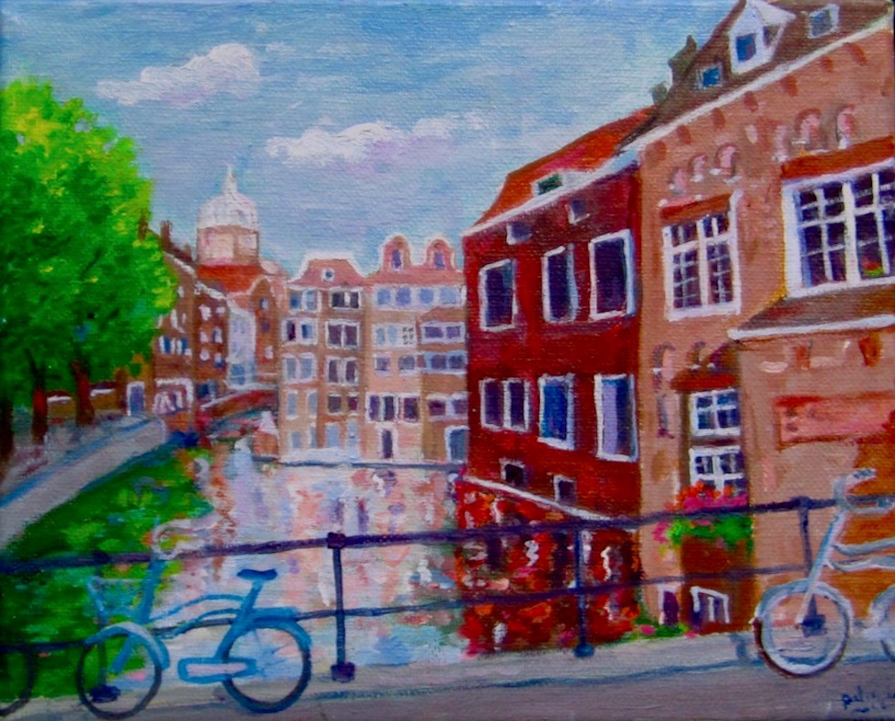 A view from a bridge towards Amsterdam's Old Centre with it's narrow old buildings and canals and known for its rich artistic history. |
