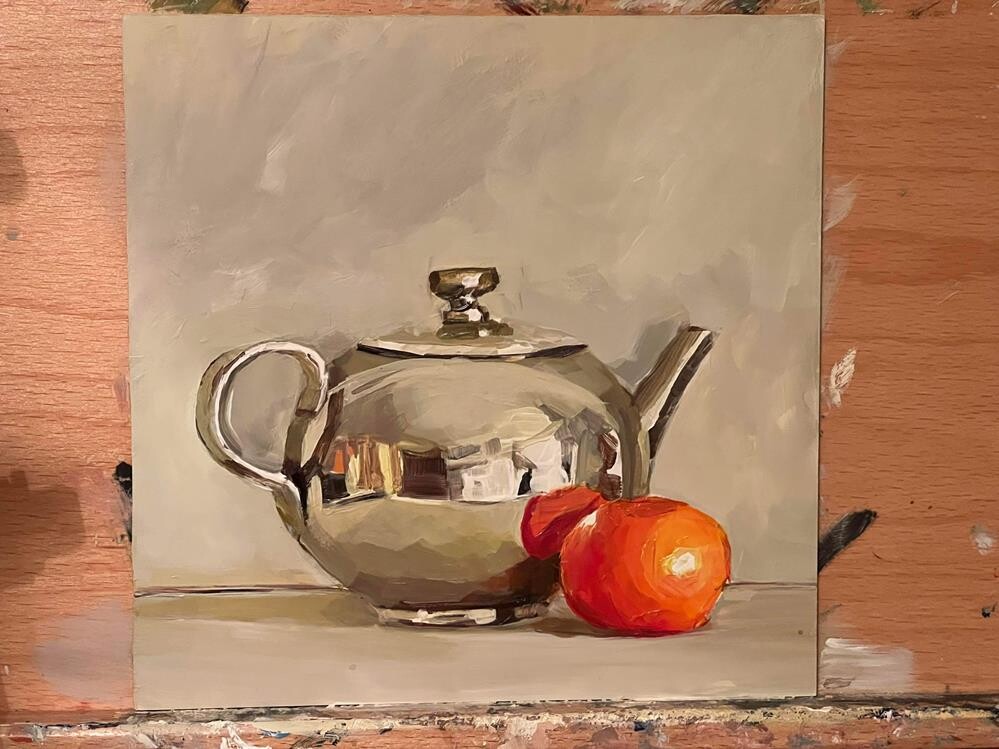 Silver Teapot with orange
