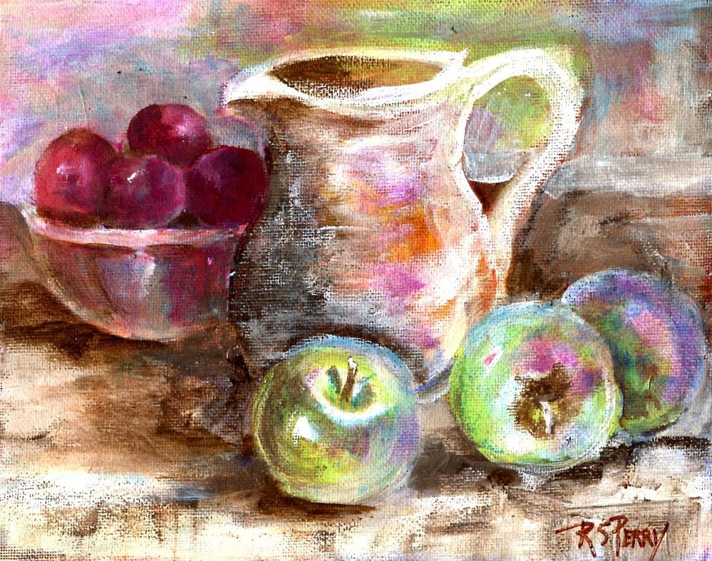These are Granny Smith green apples and a pitcher of milk on an antique table. These are Granny Smith green apples and a pitcher of milk on an antique table. |