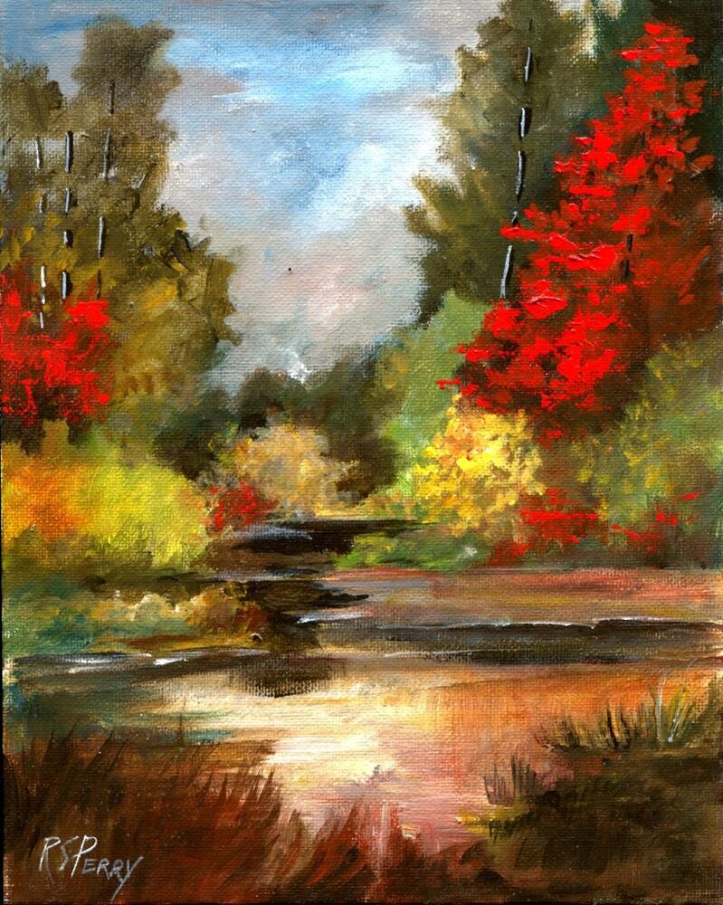 A lovely red tree takes center stage in this landscape. A lovely red tree takes center stage in this landscape. |