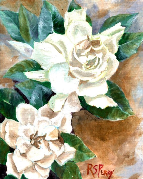 "Gardenias, unframed." by R. S. Perry