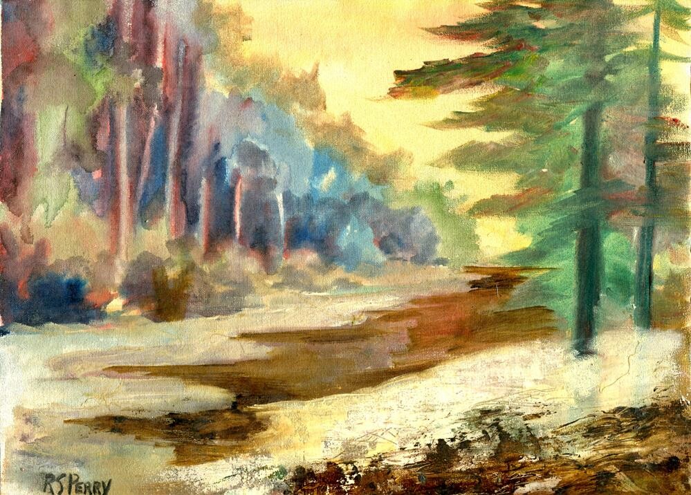 This painting is 8 3/4" by 11 3/4 ". It is and oil painting on canvas which is not stretched or mounted on panel. This painting is 8 3/4" by 11 3/4 ". It is and oil painting on canvas which is not stretched or mounted on panel. |