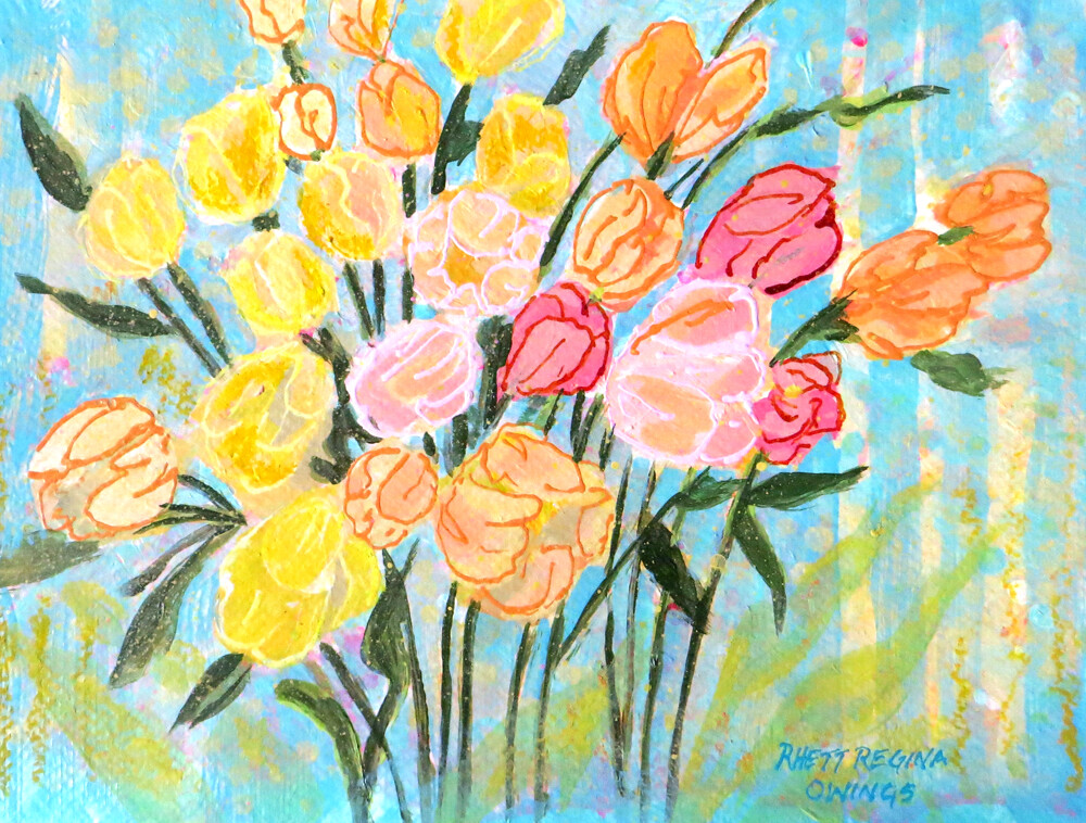 #993 Poppy Bouquet I bought these pretty pastel silk flowers at the Dollar Store and so I just had to paint them! Playing with textural acrylic backgrounds with a bit of oil pastels too. Lots of play time and fun.