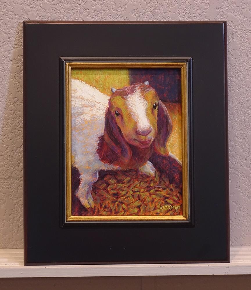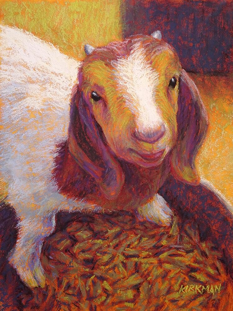 I pasteled this on Monday right after the Bee. I liked this image not for the light (my usual subject) but for the interesting viewpoint and composition ...and that irresistible smirk! That's one happy goat, standing right in his dinner! I pasteled this on Monday right after the Bee. I liked this image not for the light (my usual subject) but for the interesting viewpoint and composition ...and that irresistible smirk! That's one happy goat, standing right in his dinner! |