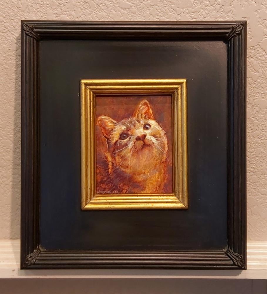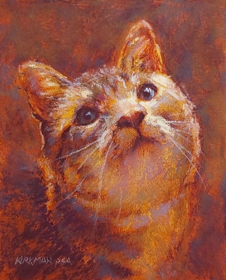 $350 framed. Buy here.This was my final demo of the MidAmerica Pastel Society workshop last month. He was one of 4 underpaintings I demoed that Saturday morning, but did not have time to pastel Saturday afternoon, so I finished him off Sunday afternoon instead. I think I was well warmed up by then, because I like how fresh he turned out! I'm especially happy with the lost edges, something I still struggle with most times.The cat is a sweetie I met in Michigan who lived with the hosts I stayed with for the Ann Arbor Street Art Fair a few years ago. They cautioned me "He bites!" That was true, but he was also a lovey purr ball! I think he just couldn't understand why I wouldn't bite him back... it was all playtime to him!