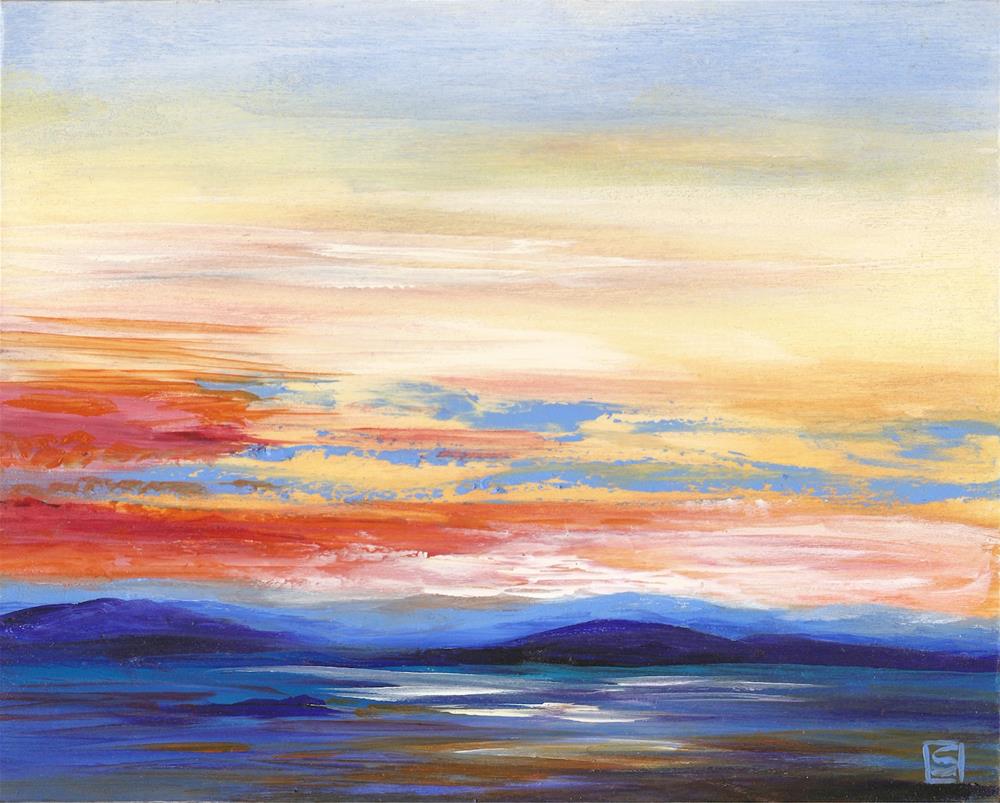 SOLD AT RITCHCRAFT GALLERY "The Setting Sun" depicts one of our beautiful summer sunsets over the lake.