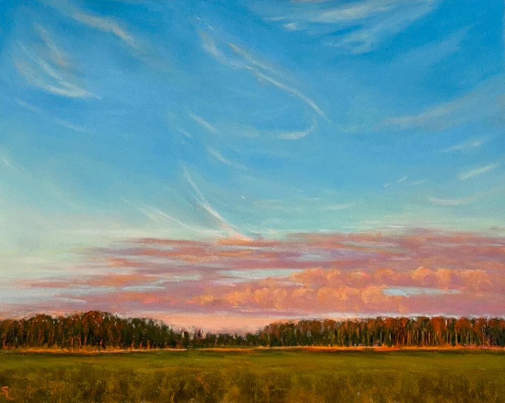 With the shorter days of this time of year, I seem to catch more striking sunsets, like this one, at a beautiful place called Crow Creek Farm. Here I found a wonderful mixture of woods, meadows, and marsh and saw the setting sun set the distant woods glowing while clouds performed acrobatics above.
