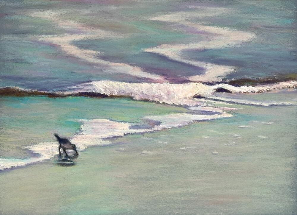 My recent trip to the beach reminded me of one of my favorite birds, called a sanderling. They’re in constant motion, running back and forth trying to capture the sand crabs and other tiny invertebrates that they like to eat without getting washed out to sea by a wave. They’re much cuter than the gulls, a lot less noisy, and they won’t steal your picnic lunch. What’s not to like?