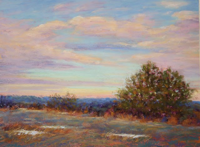 Yesterday started out to be one of those winter days that everybody hates: cold and rainy but ended as this painting indicates: with a gorgeous blue sky and magnificent colors in the clouds.
