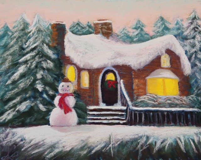 This is actually my last painting of 2018, just posted a little late. We don’t often get snow here so I based this on one of my Christmas decorations that’s still sitting on the mantel. And yes, my Christmas tree is still up, though coming down tomorrow. I will miss the colored lights, the beautiful ornaments, and the wonderful scent of a blue spruce tree!
