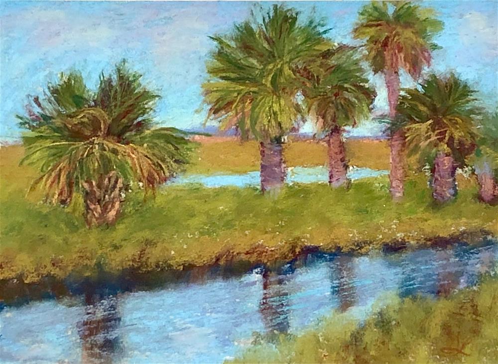 I’ve been trying to slowly clean up and better-organize my small art studio this summer and it’s been a voyage of discovery. I’ve found a few art supplies that I forgot I had and discovered some old paintings that were hidden behind some of my newer ones. Today’s painting is one that I discovered and I believe is based on a reference photo that my talented artist friend Karen Margulis took. We both spent our childhood in southern Florida and have fond memories of this area.