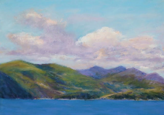 On the west coast of Scotland, is a beautiful sea loch (does Scotland have any ugly lochs?), called Loch Linnhe. About 31 miles long, the loch follows the Great Glen Fault and opens onto the Firth of Lorne (I love Scotland’s place names!). I’ve painted the gorgeous sunsets along here before and decided it was time to paint a sunny afternoon.