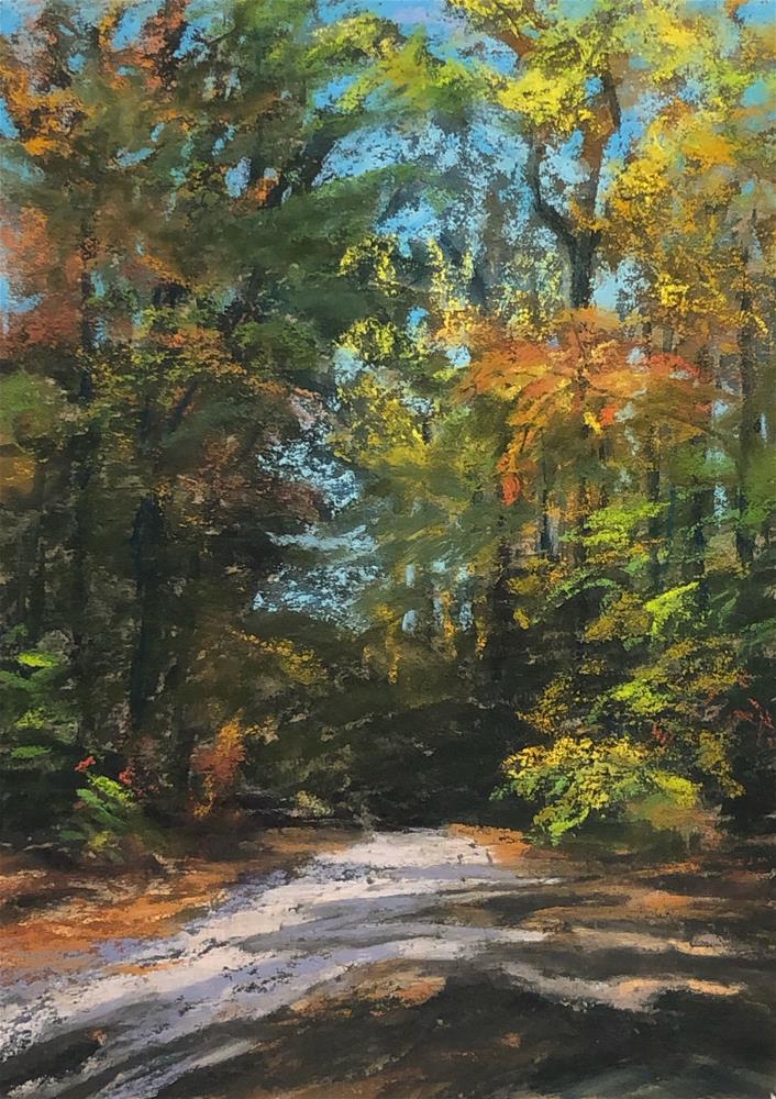 I love being in the woods! I’ve sought refuge in the shade of trees, in their branches, in their beauty, since I was a child. I’ve never thought of woods as dark or scary….maybe those are my non-human primate genes speaking to me, to come swing, hang out, play, hide, or just linger, smelling the fragrance of the earth beneath and the limbs above. I painted this scene on location, standing in the midst of trees, listening to the birds calling and the wind blowing through the fall-painted leaves, and reveling in the quiet splendor of it all. Happy Weekend! I love being in the woods! I’ve sought refuge in the shade of trees, in their branches, in their beauty, since I was a child. I’ve never thought of woods as dark or scary….maybe those are my non-human primate genes speaking to me, to come swing, hang out, play, hide, or just linger, smelling the fragrance of the earth beneath and the limbs above. I painted this scene on location, standing in the midst of trees, listening to the birds calling and the wind blowing through the fall-painted leaves, and reveling in the quiet splendor of it all. Happy Weekend! |