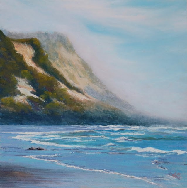 When I was trying to figure out the title of this painting, I first focused on the fog and the growing loss of light, etc. Then I thought, why focus on loss? Focus on the bright side: the beautiful light shining on the cliff. I want to focus, even when it’s difficult, on the beautiful in my life in the form of my family and dear friends...my wonderful colleagues and students. May we all get through this tough end of the semester, these “gray” days, helping each other remember the beautiful all around us.