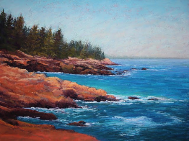 For this large painting, I used photos I took while climbing out on the rocks and shooting the shoreline all the time hoping I didn’t lose my balance and become part of the crashing surf below.