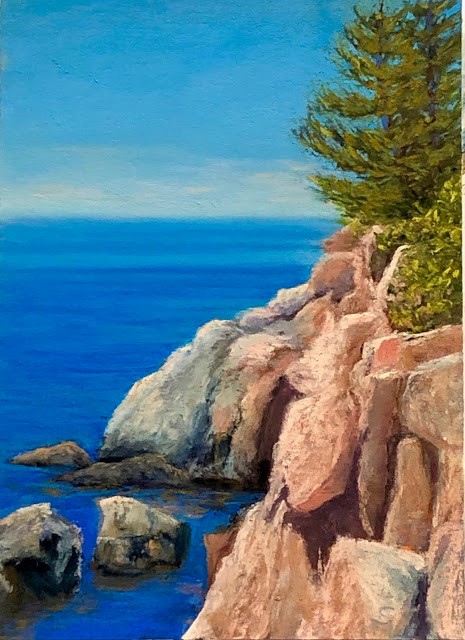 While working on this painting, as well as while writing this post, I have been on edge since all day we have been receiving news of the progress of our first grandchild’s entry into the world. Like most people in this situation, I just want everything to go well for my daughter-in-law and the baby. At least when you look into the distance in this painting, there are blue skies, signaling happy times. Update: Mom and baby are doing well.