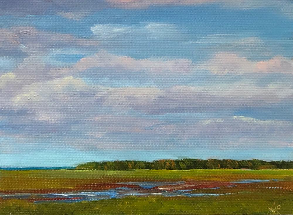 I’m finding like a lot of people, that I need to take a break from the news from time to time to maintain my equilibrium. Fortunately, painting landscapes encourages me to focus on the positive: the beautiful natural world that exists around us. So, while I’m not ignoring what’s going on right now, I am choosing to focus on remembering that beautiful skies also exist, that sunny days still happen, and that we are all better when we remember all that we share instead of what divides us.