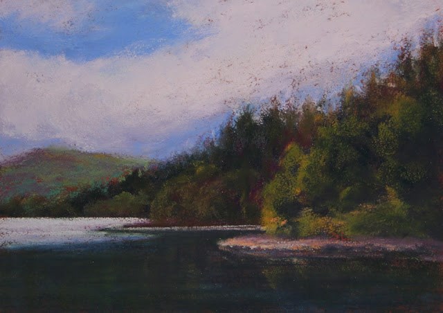 We’re going back to Scotland and the Lake District this summer and I’m hoping to get a few minutes now and again to paint while I’m there. To make sure that I’m bringing the right colors in the very small Heilman box that I’m bringing, I’ve been painting from my reference photos of the UK, using colors only from this box. This is a painting of Loch Katrine, a quietly beautiful, peaceful area in Scotland.