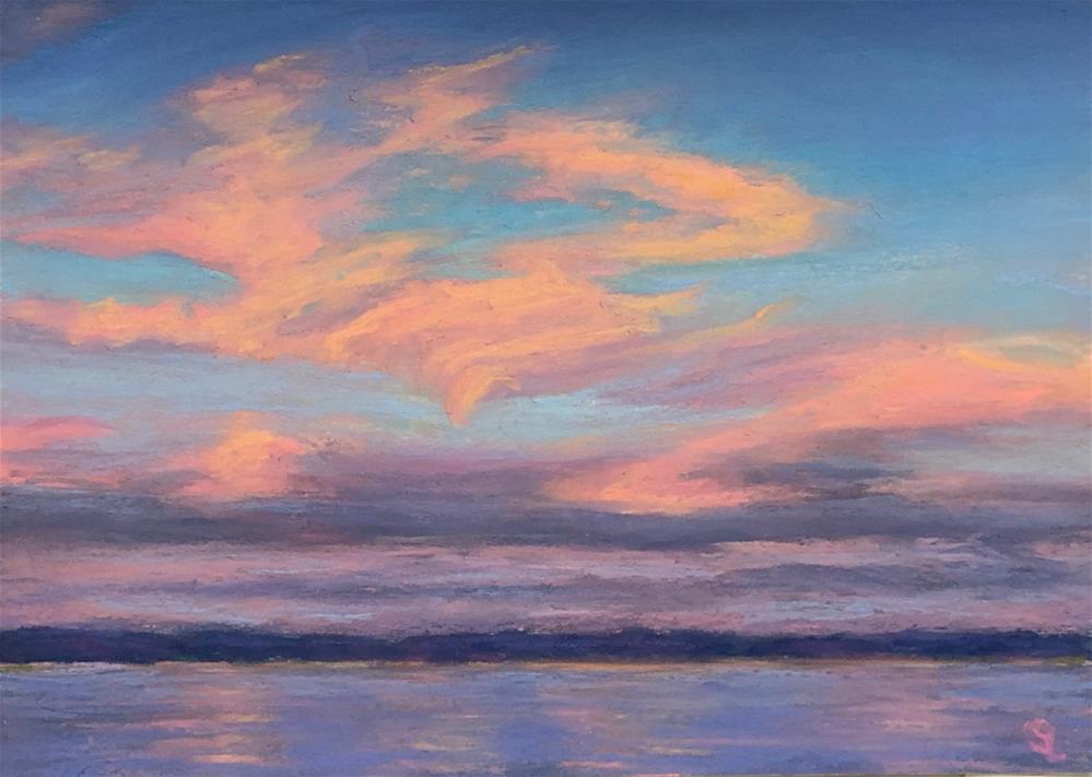 The days are getting shorter now and it’s grey and cloudy here in Georgia with no sun expected until Monday. Fortunately, I can paint some sun and color as in this beautiful, glowing sunset on the east coast.