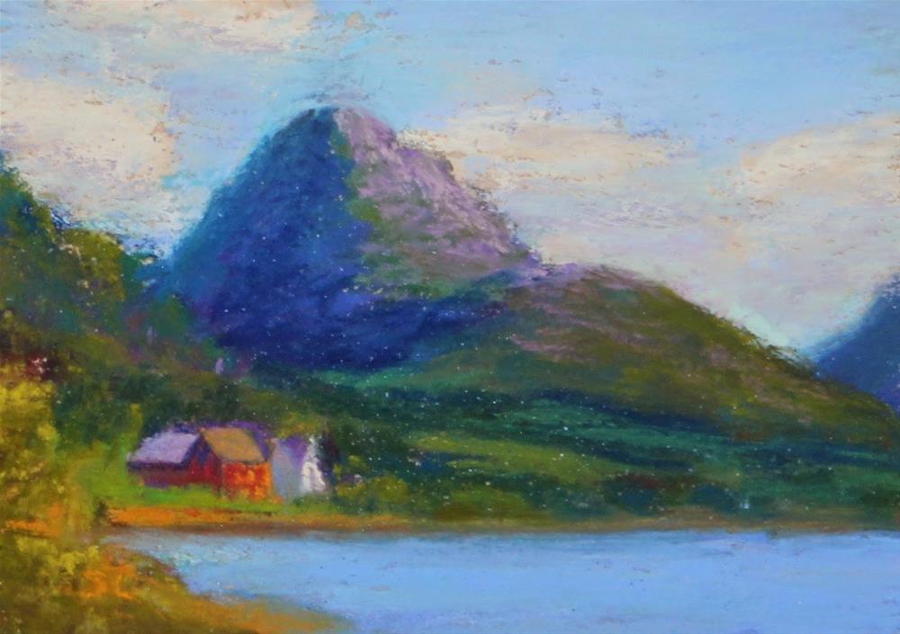 With all of the gray, cold days we’ve been having and the long hours I’ve been working lately, I’ve been thinking a lot of summer. I painted this little mini based on photos I took last summer of Skei, an absolutely gorgeous area in western Norway. I wonder what it would be like to live on the shore of this beautiful lake tucked into the safe shelter of the mountains surrounding you. What an amazing view you would have with your morning coffee!