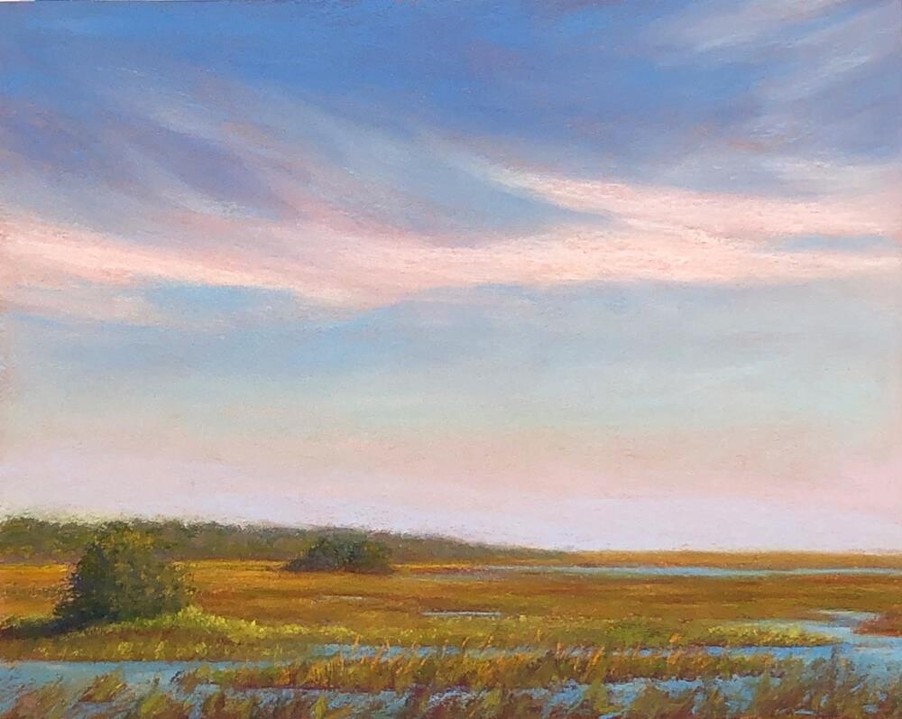 I’ve learned to appreciate the sometimes stark beauty of the wetlands in early spring. They are not yet the lush green they will become in the summer but are nonetheless beautiful to me with their sinuous, blue pathways of water.