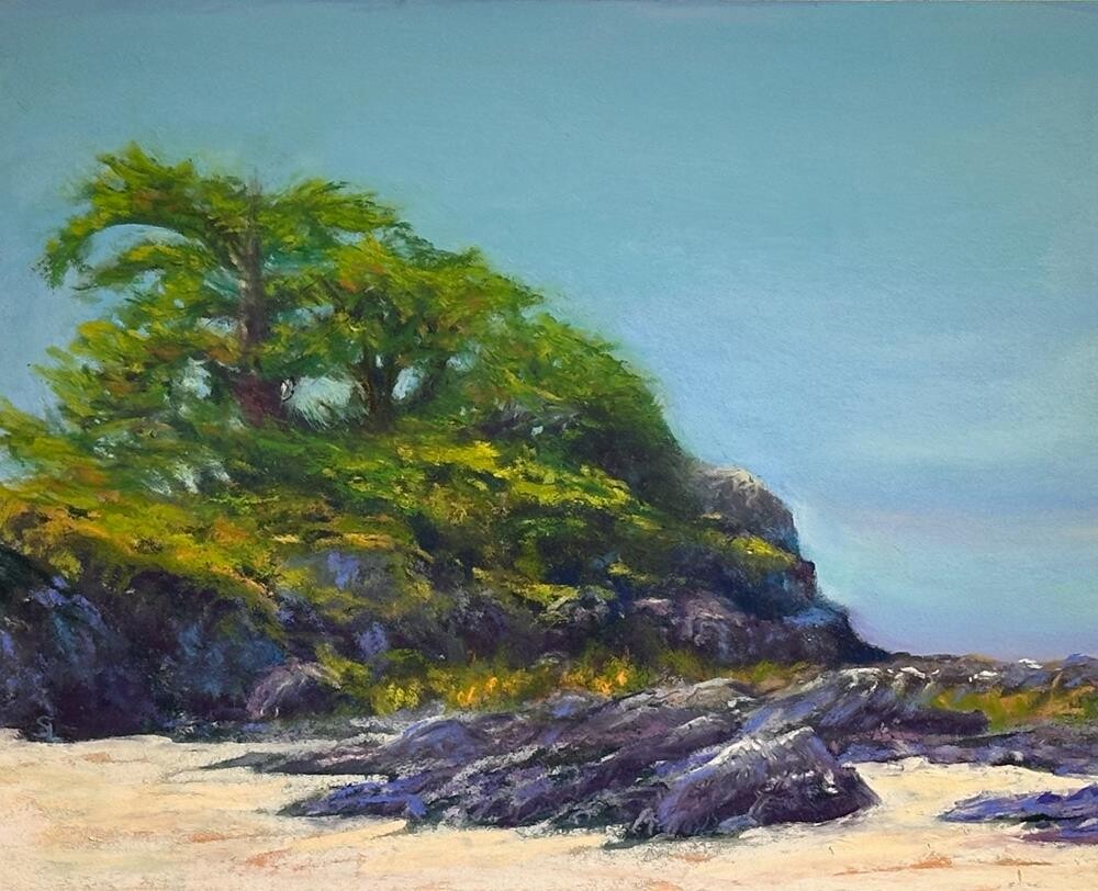 In just a few weeks, I hope to be walking here in this quietly magnificent place. It’s a beautiful beach that not only weathers powerful Pacific storms but also harbors starfish of all different colors and these wonderful, hardy trees and shrubs; it’s a visible reminder of how resilient nature and many of us are. We may be a little worn but we have weathered many a storm.