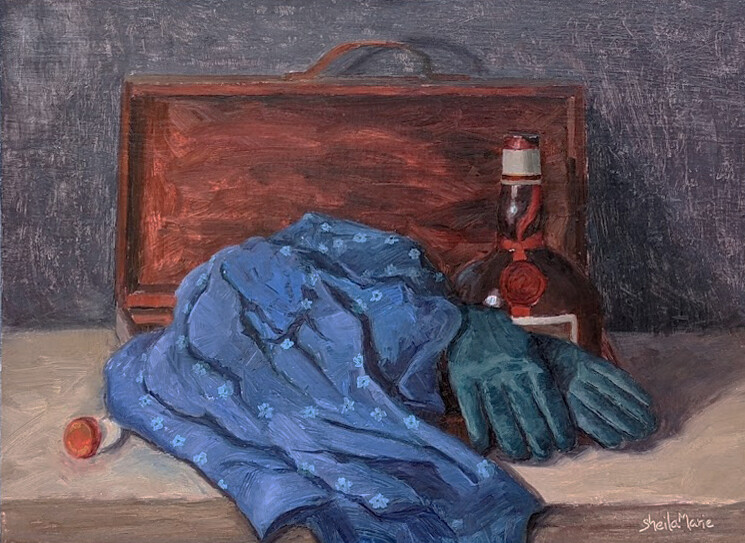 This was the 2nd setup I brought to my paint-out group still life meeting (see yesterday's post). I've had this little suitcase for awhile. I really love the warm tones of it with the same tones in the Gran Marnier bottle. Then, including the cool colors of the blue scarf and teal green kid gloves just felt right. Again, because the elements for the still life were mine I was able to reset it up in my studio and create the painting. @sheilamarieart This was the 2nd setup I brought to my paint-out group still life meeting (see yesterday's post). I've had this little suitcase for awhile. I really love the warm tones of it with the same tones in the Gran Marnier bottle. Then, including the cool colors of the blue scarf and teal green kid gloves just felt right. Again, because the elements for the still life were mine I was able to reset it up in my studio and create the painting. @sheilamarieart |