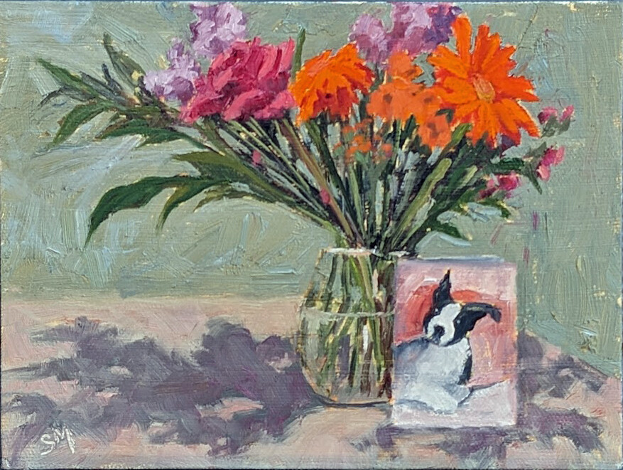 Visiting my sister a few weeks back. She was recovering from a surgery. I thought this bunch of flowers and card that her grand-daughter brought her were a perfect subject to paint. Visiting my sister a few weeks back. She was recovering from a surgery. I thought this bunch of flowers and card that her grand-daughter brought her were a perfect subject to paint. |