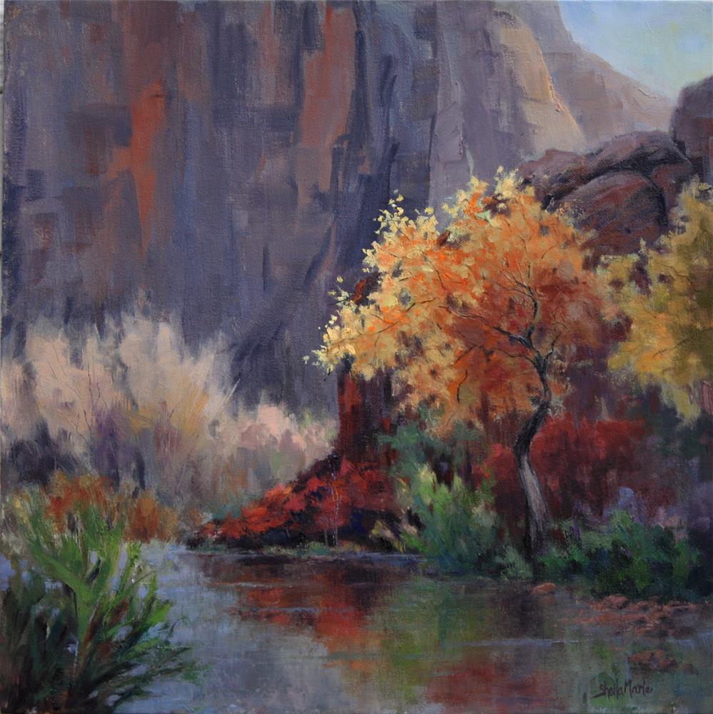 The Narrows. I fell in love with that distant cliff and the sun just catching the edge of the tree up against the red rocks.