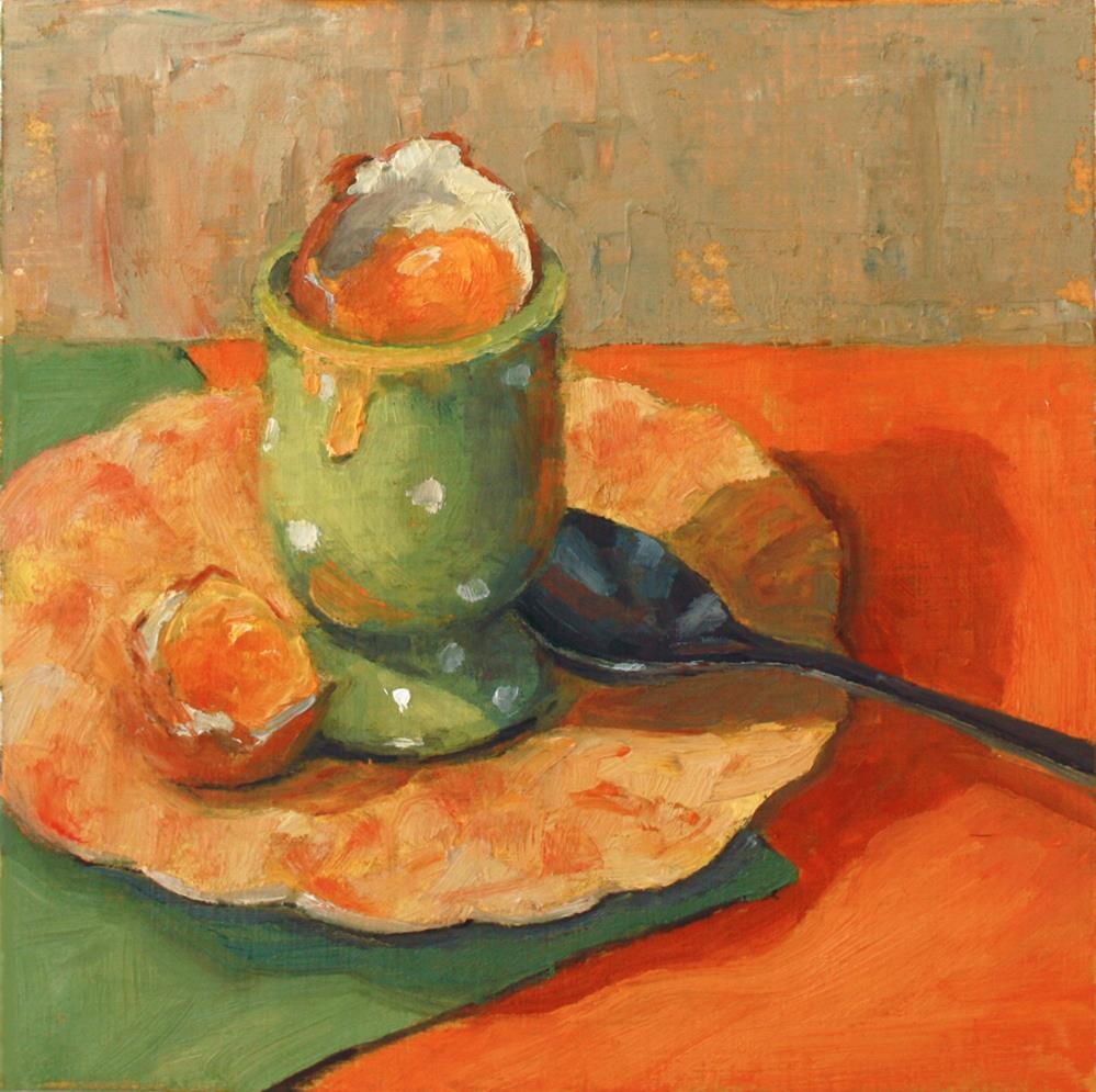 Poached egg anyone? I found these cool little poached egg cups awhile ago at the thrift store. I love the polka-dots!Painted on a deep cradled birch panel so no frame necessary. It can be hung on the wall or displayed on a surface.