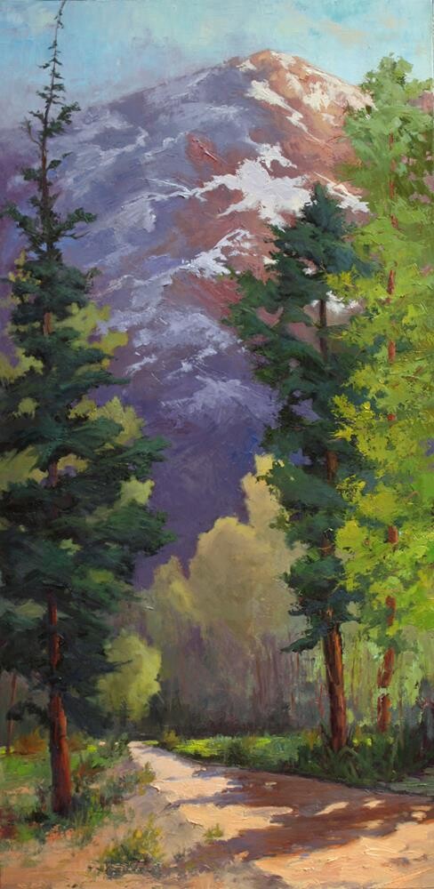 I was driving on a back road to Byers Peak. Happen to glance in my side view mirror and caught this scene. I pulled over and did an "on the spot" work. Later in my studio I used the on the spotter as my reference for the larger piece.Free shipping & handling in the Continental United StatesFrame available-contact for more info