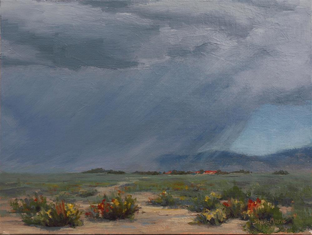 I painted this just north of Alamosa, CO. I was coming home from Taos and loved the scene with the distant ranch and out buildings. A storm was building up. First it appeared as if it was going to move east. But after 45 min. or so it turned and headed south. Straight at me. Finished quickly and just barely got packed up before it poured. I painted this just north of Alamosa, CO. I was coming home from Taos and loved the scene with the distant ranch and out buildings. A storm was building up. First it appeared as if it was going to move east. But after 45 min. or so it turned and headed south. Straight at me. Finished quickly and just barely got packed up before it poured. |