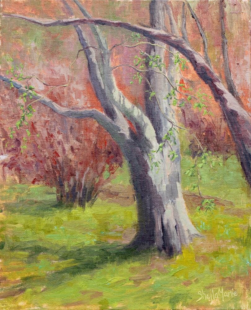 Patty and I enjoyed a beautiful morning yesterday painting down near the communal farmers garden in Littleton. Patty worked on painting the cacophony of gardening tools, arbors, pails and what not. I focused on this tree just starting to burst with spring leaves. Way too soon the lighting change drastically. We packed it up. I headed back this morning around the same time to spend another half an hour to finish the piece and before the wind kicked in hard. @sheilamarieart Patty and I enjoyed a beautiful morning yesterday painting down near the communal farmers garden in Littleton. Patty worked on painting the cacophony of gardening tools, arbors, pails and what not. I focused on this tree just starting to burst with spring leaves. Way too soon the lighting change drastically. We packed it up. I headed back this morning around the same time to spend another half an hour to finish the piece and before the wind kicked in hard. @sheilamarieart |