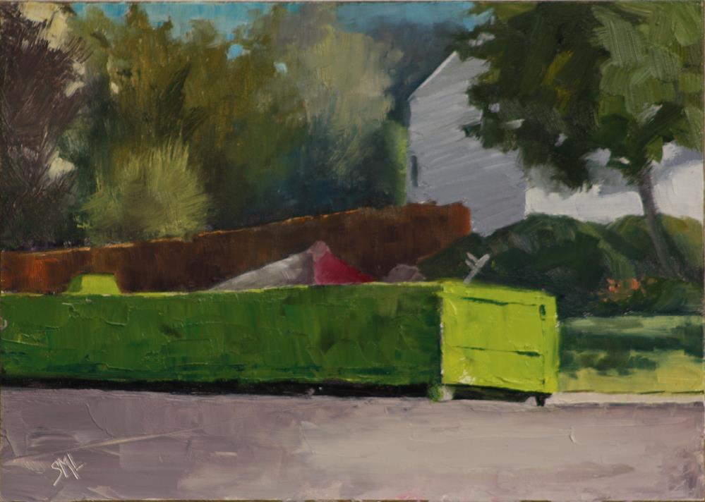 Lots of folks seem to be gutting and remodeling.I just stopped dead in my tracks when I saw the bright greens of the bin and the red sofa hanging out. Love those shapes! Lots of folks seem to be gutting and remodeling.I just stopped dead in my tracks when I saw the bright greens of the bin and the red sofa hanging out. Love those shapes! |