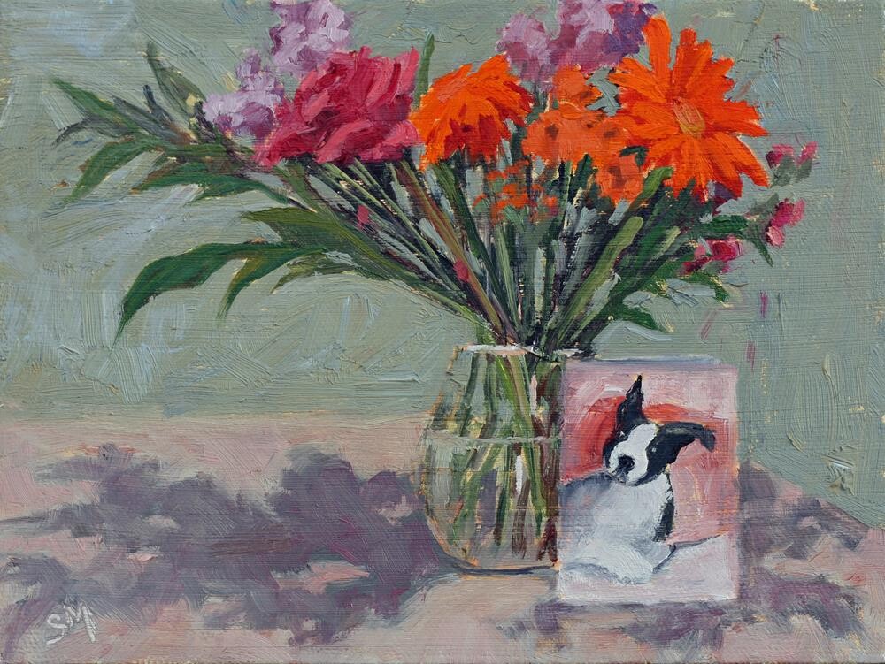 Helping my sister out after she had a full knee replacement last July. Being in Texas it was way, way too hot to paint outdoors. Her grand-daughter delivered a card and bunch of flowers. Perfect little still life! Helping my sister out after she had a full knee replacement last July. Being in Texas it was way, way too hot to paint outdoors. Her grand-daughter delivered a card and bunch of flowers. Perfect little still life! |
