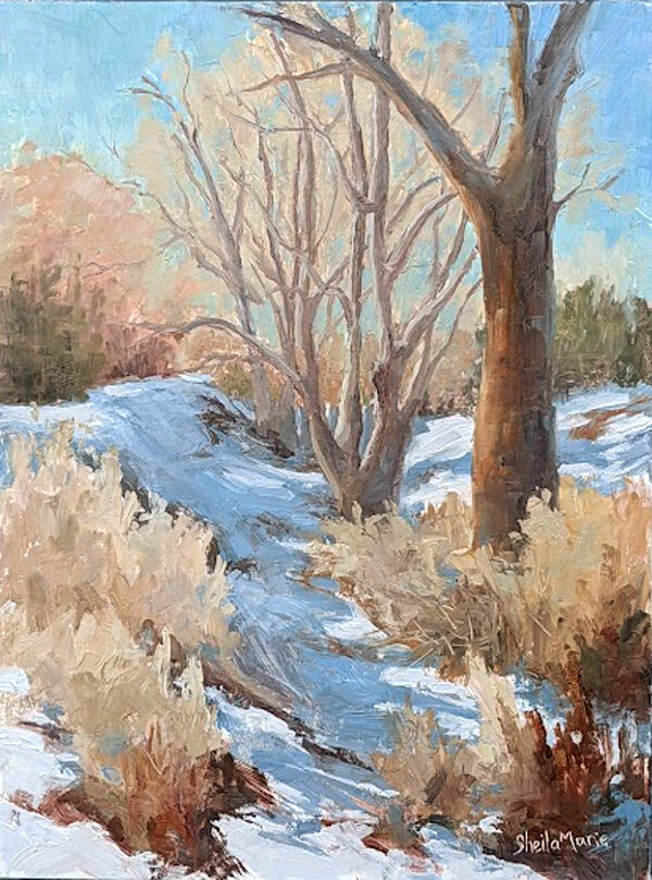Violet and I explored a trail that I've seen just outside of my neighborhood for several years but have just never taken the time to check it out. A couple of weeks ago we did it and we were rewarded. For me, several great areas to set up and paint the cottonwoods, willows and right now, snow banks. Crazy Violet found a pool of frozen icy water that she could not resist, running, jumping and rolling around in it. Nearly pulled me down with her. I came back last week with my paints and made myself chose a spot right away. Of course, it's those beautiful shadows that get me every time! @sheilamarieart Violet and I explored a trail that I've seen just outside of my neighborhood for several years but have just never taken the time to check it out. A couple of weeks ago we did it and we were rewarded. For me, several great areas to set up and paint the cottonwoods, willows and right now, snow banks. Crazy Violet found a pool of frozen icy water that she could not resist, running, jumping and rolling around in it. Nearly pulled me down with her. I came back last week with my paints and made myself chose a spot right away. Of course, it's those beautiful shadows that get me every time! @sheilamarieart |