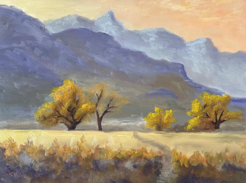 A fall scene found while driving through rural Nevada. Our wide open spaces are fun to paint! |