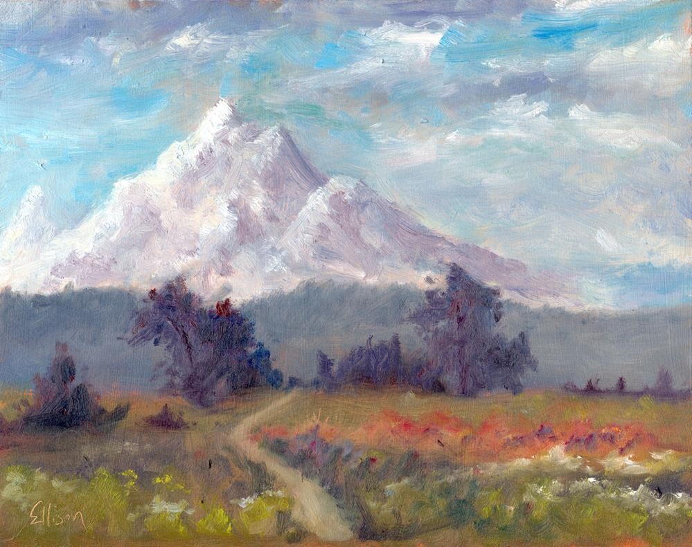 My view of Mt. Hood as we approached from the east. My good friend Teri took the reference photo - hers was better than mine! I took a couple artistic liberties and true Oregonians will find it not completely anatomically correct, but I'm fine with Bierstadt-ing it a bit! My view of Mt. Hood as we approached from the east. My good friend Teri took the reference photo - hers was better than mine! I took a couple artistic liberties and true Oregonians will find it not completely anatomically correct, but I'm fine with Bierstadt-ing it a bit! |