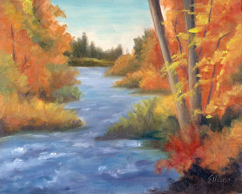 The Truckee River meandering it's way through Reno, Nevada during peak fall color. |