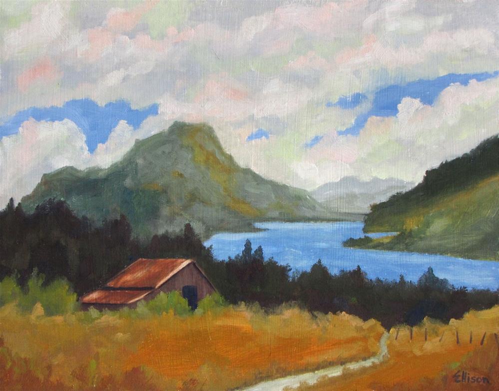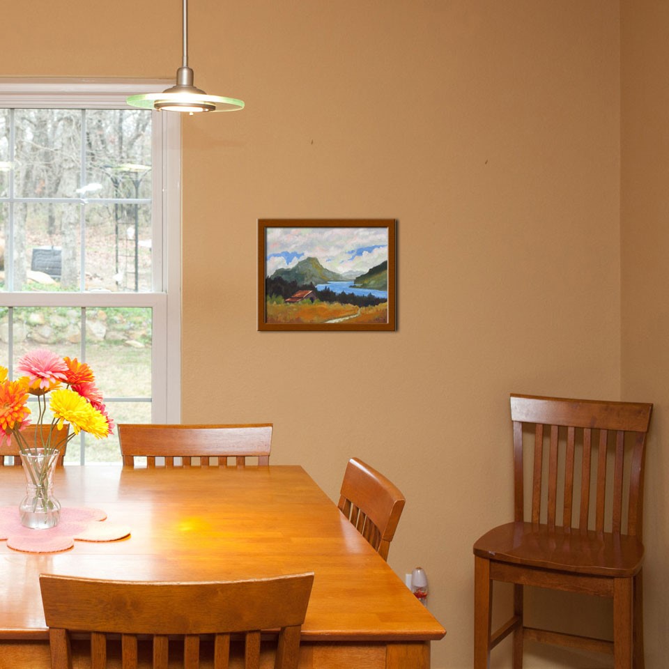 Painted from a scene high above the Columbia River in Oregon. Imagined Lewis and Clark floating by! |