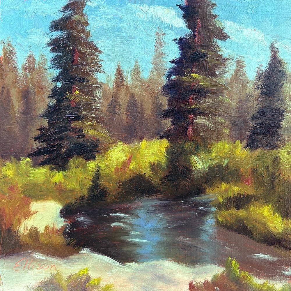 Painted this plein air while camping up in the Sierra Nevada near Hampshire Rocks. |