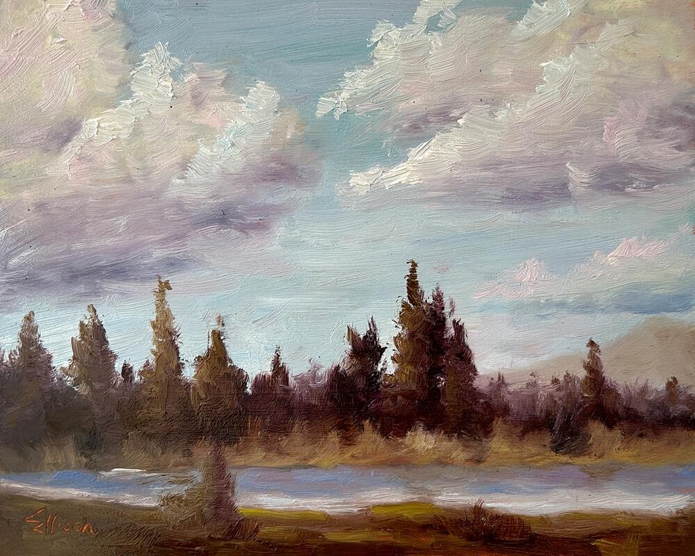 Painted on location right from our campsite at Prosser Reservoir, CA. |