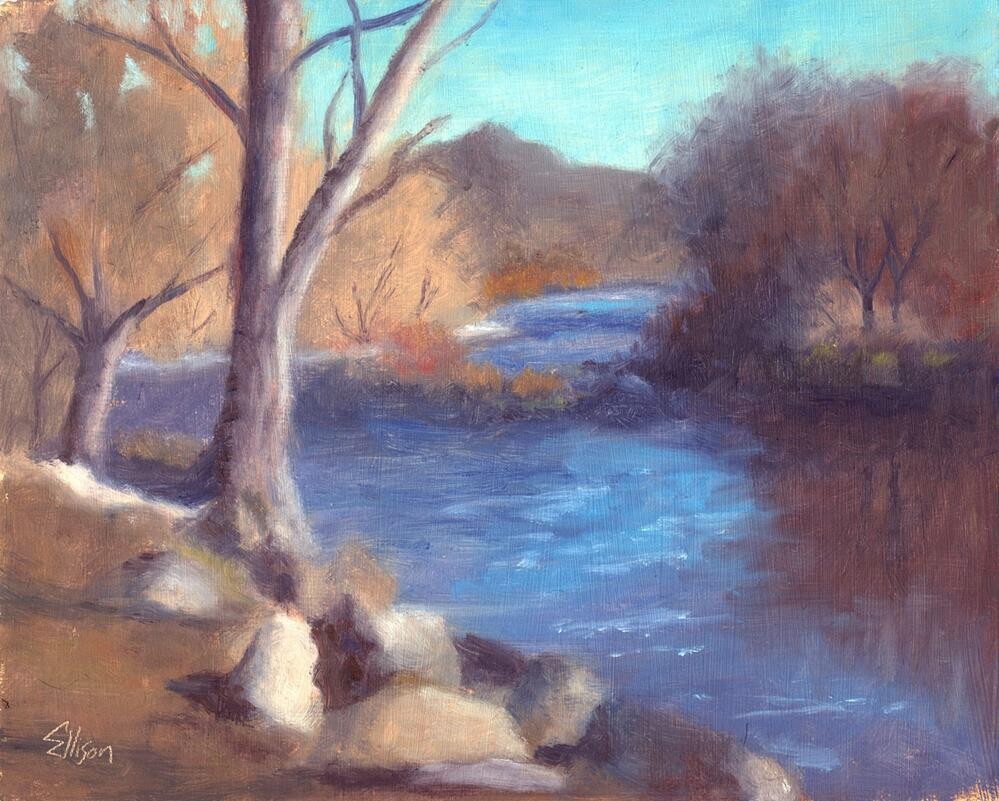 The Truckee River winding its way past Rock park in Sparks, Nevada on a warm winter day. |