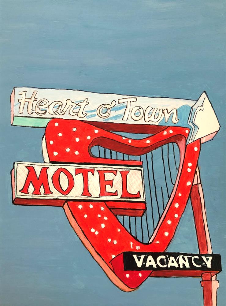 The seventh in a series representing the Major Arcana of the Tarot. Each are depicted by roadside attraction signs. The Heart o' Town Motel represents #6 The Lovers. The seventh in a series representing the Major Arcana of the Tarot. Each are depicted by roadside attraction signs. The Heart o' Town Motel represents #6 The Lovers. |