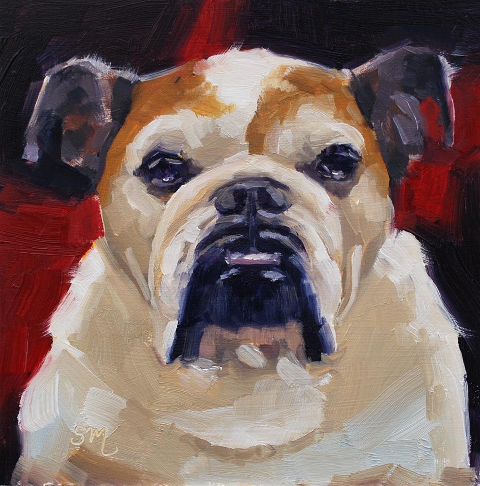 I met this fabulous grande dame recently at an art show. The sweet, twelve year old bulldog was being lovingly pushed around in her own red stroller. Very regal!