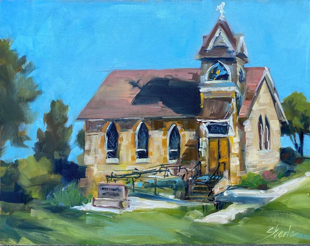 Last Friday morning I was in Manhattan Kansas and braved the heat to paint the Sedalia Community Church. It is located about 5 miles from where I was located on a dirt road. This church has an interesting history in that at one time it was in disrepair and no one was using it. Some high school kids stole the bell one evening, took it to school to make some noise and they were caught. When they were in front of the judge for their punishment, the judge decided the boys were to return the bell to the church and instead of jail time, their judgement was to renovate the entire church. It is a beautiful prairie church now with a wonderful bell tower, and is in full bloom. Redemption Last Friday morning I was in Manhattan Kansas and braved the heat to paint the Sedalia Community Church. It is located about 5 miles from where I was located on a dirt road. This church has an interesting history in that at one time it was in disrepair and no one was using it. Some high school kids stole the bell one evening, took it to school to make some noise and they were caught. When they were in front of the judge for their punishment, the judge decided the boys were to return the bell to the church and instead of jail time, their judgement was to renovate the entire church. It is a beautiful prairie church now with a wonderful bell tower, and is in full bloom. Redemption |